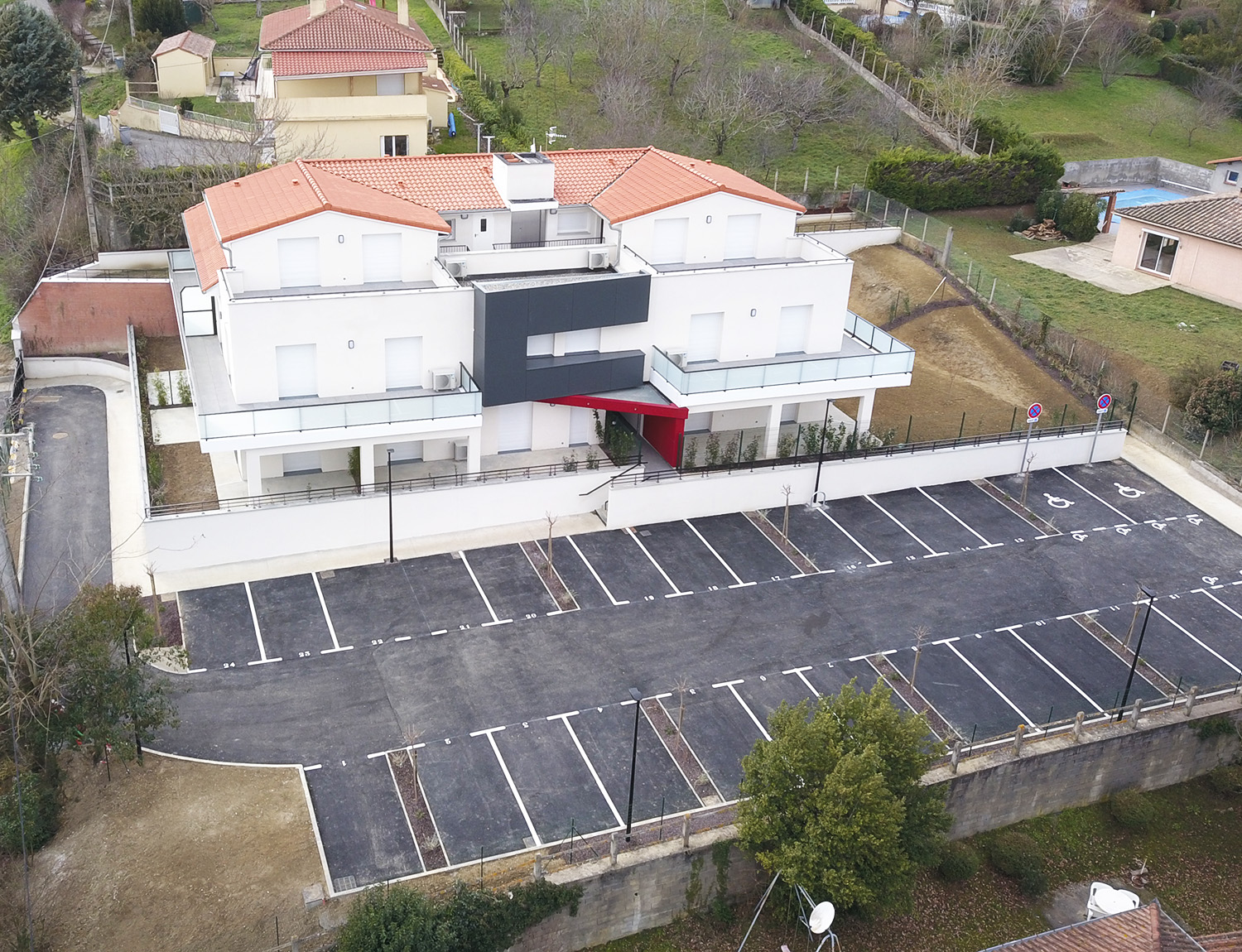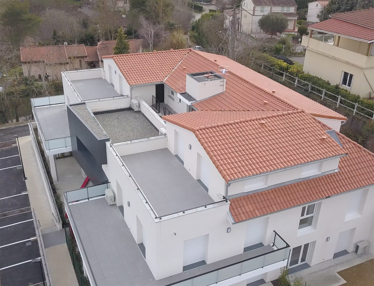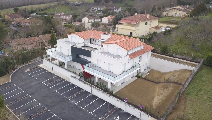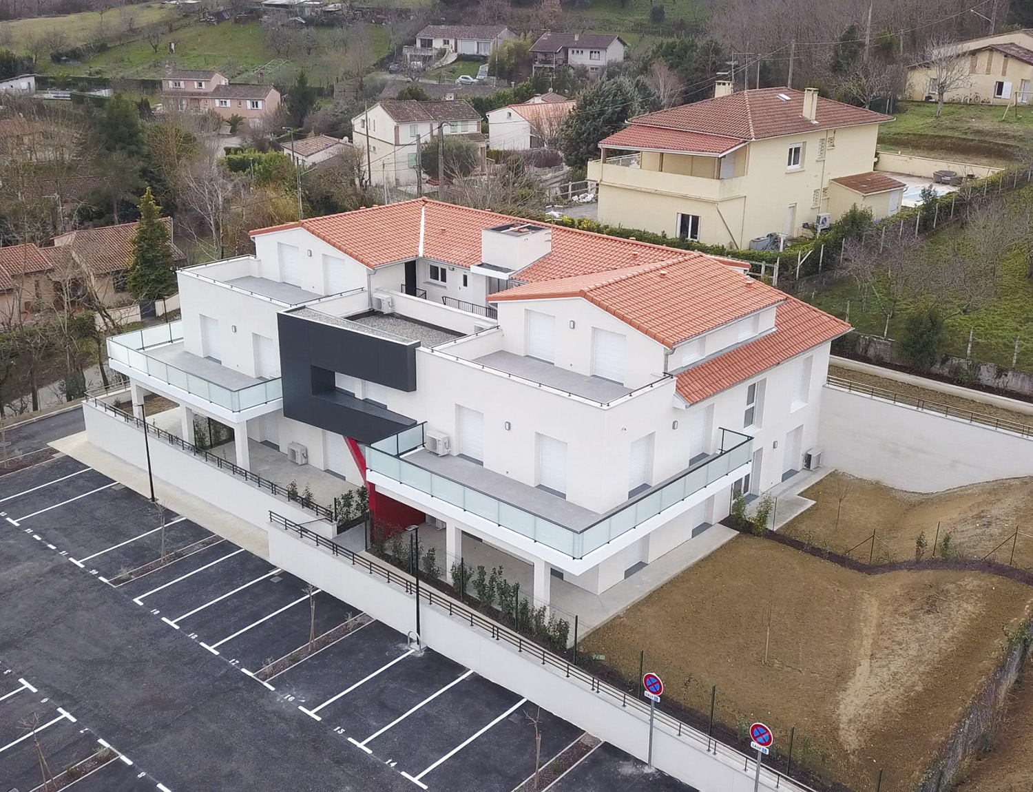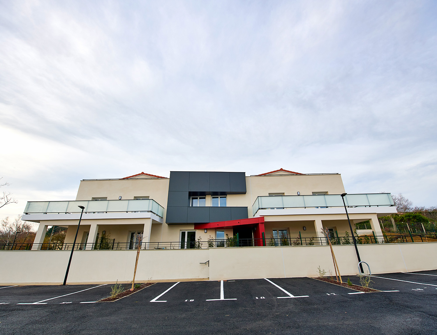 Les 12 logements blottis sur les coteaux confère à ce petit collectif un esprit confidentiel et intimiste. Eloigné de l'axe routier principal et relié par une voie préservée, la résidence s'intégre parfaitement à son environnement naturel et végétal. Les façades composées de larges terrasses se couronnent d'un toit de tuile roses pour la touche authentique.
