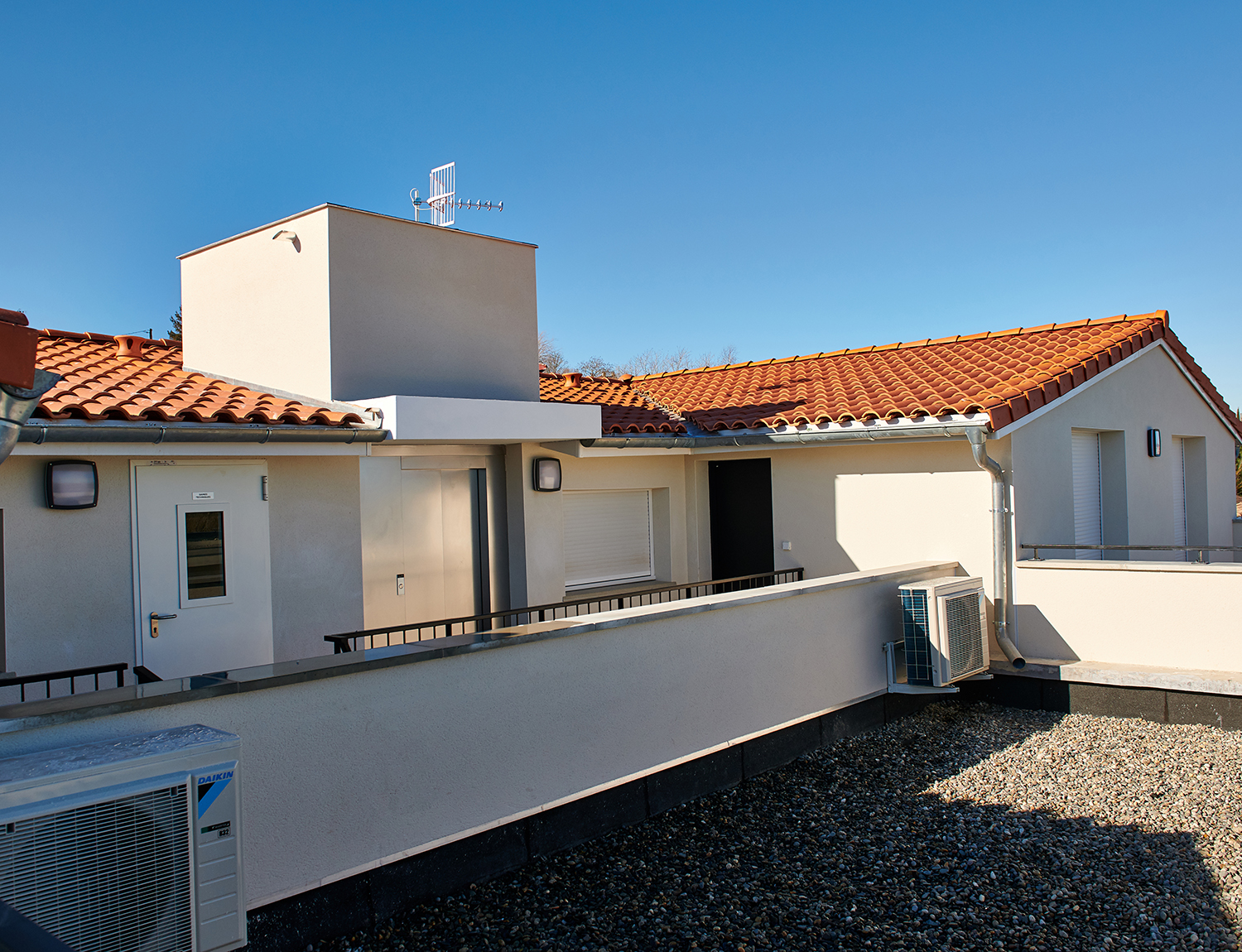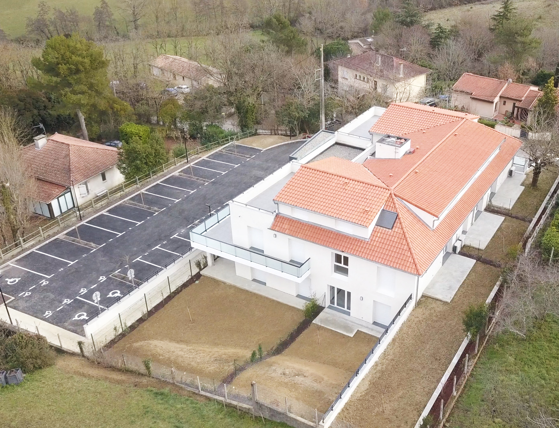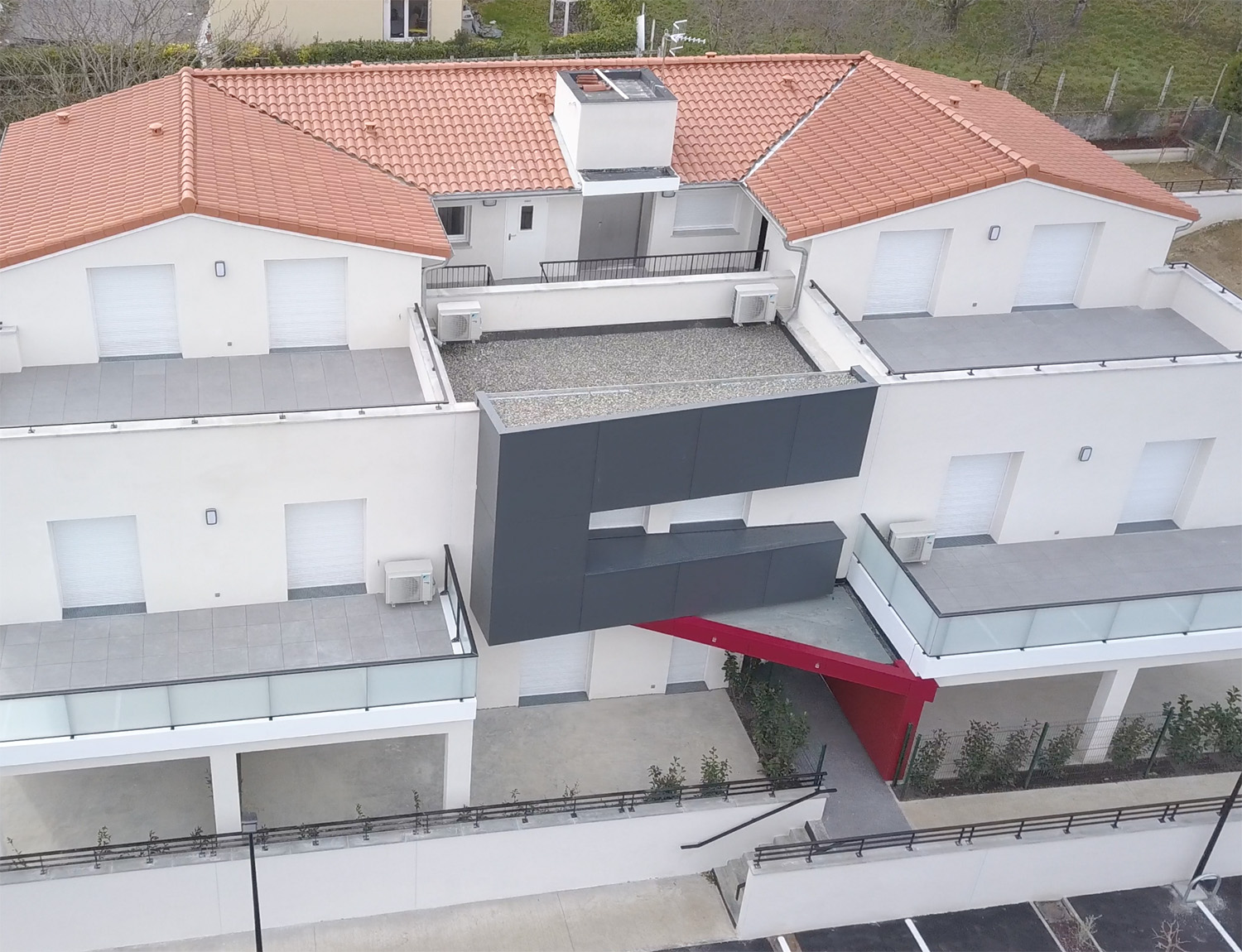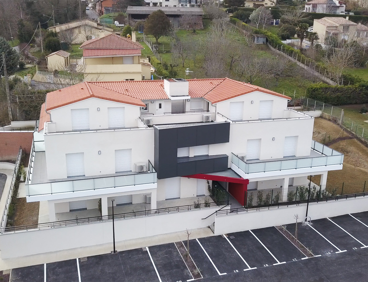 Les 12 logements blottis sur les coteaux confère à ce petit collectif un esprit confidentiel et intimiste. Eloigné de l'axe routier principal et relié par une voie préservée, la résidence s'intégre parfaitement à son environnement naturel et végétal. Les façades composées de larges terrasses se couronnent d'un toit de tuile roses pour la touche authentique.